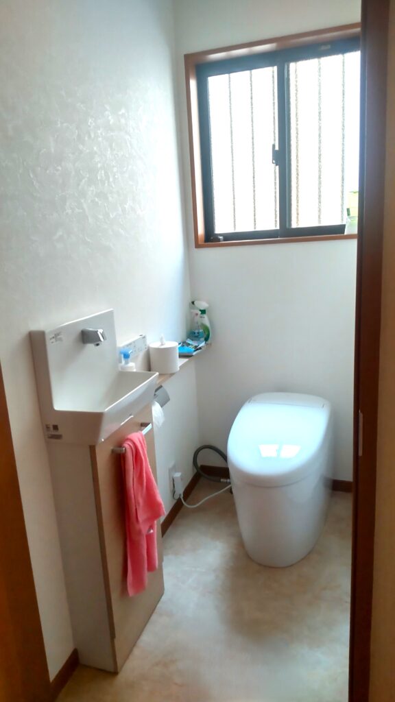 床や壁・天井も張替えすることで明るい雰囲気になり、手洗を別につけても圧迫感が感じられない空間になってます。